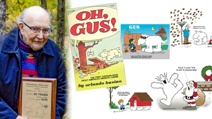 Orlando Busino (October 10, 1926 – January 11, 2022) was an American cartoonist renowned for creating “Gus,” the beloved shaggy white dog who graced the pages of Boys’ Life and later Scout Life magazines for over five decades. His work brought joy to generations of readers and left an indelible mark on the world of cartooning.