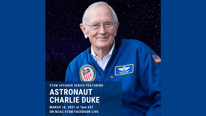 Charles Moss Duke Jr. was born on October 3, 1935, in Charlotte, North Carolina. He earned the rank of Eagle Scout in 1946 and was awarded the Distinguished Eagle Scout Award in 1975. Duke graduated from the United States Naval Academy in 1957 and later received a Master of Science degree in Aeronautics from the Massachusetts Institute of Technology in 1964. He served as a fighter pilot in the United States Air Force and later became a test pilot. In April 1966, Duke was selected as part of NASA’s fifth group of astronauts.